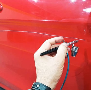 Técnica detalalhada para corrigir riscos sem comprometer a originalidade da pintura, resultado discreto e eficiente.